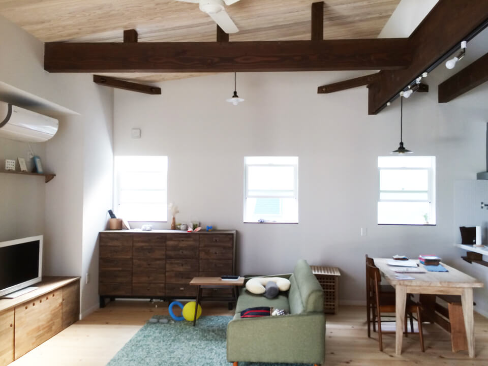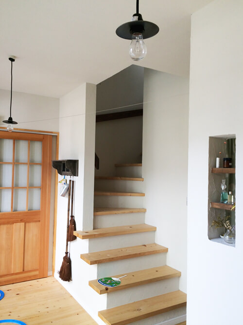 ひとつひとつ時間をかけて打合せて作成し完成したK様邸。珪藻土はご夫婦でほとんどの壁を塗られました。