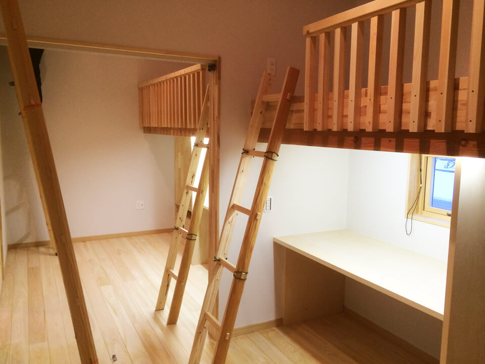 左右対称にお子様2人の部屋を配置 ロフトベッド