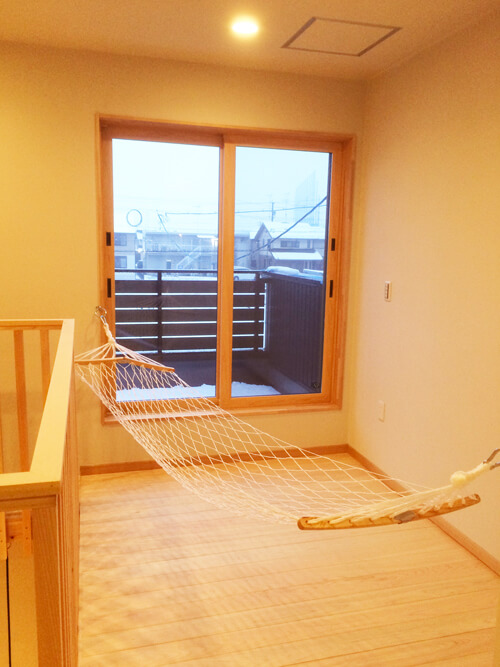 2階のホールハンモックを取り付け、優雅なひととき