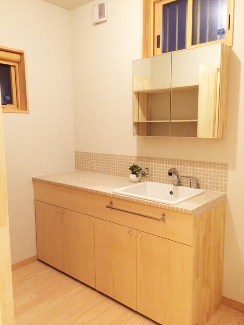 25mm角タイルを使用した造作洗面