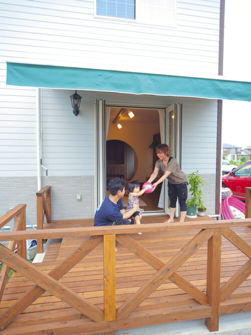 お子様と遊べる広いウッドデッキ