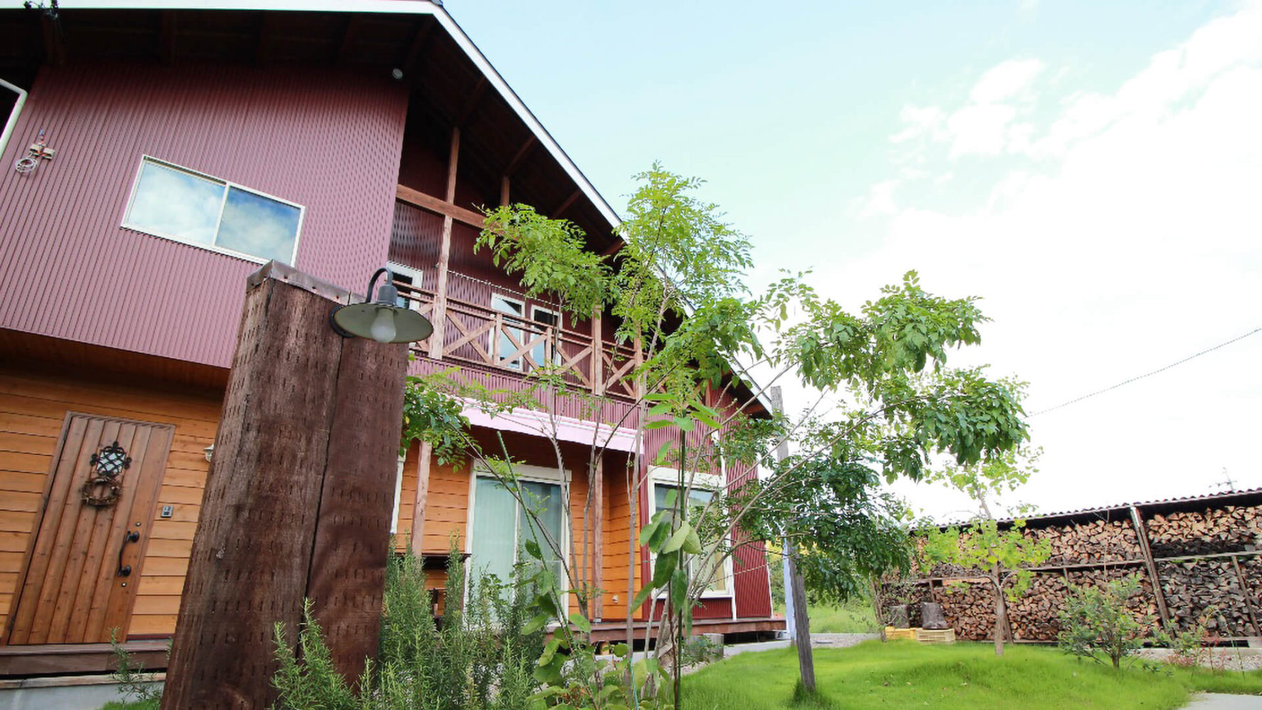 壁:赤レンガ調のガルバリウムの壁 屋根:ブラックのガルバリウム